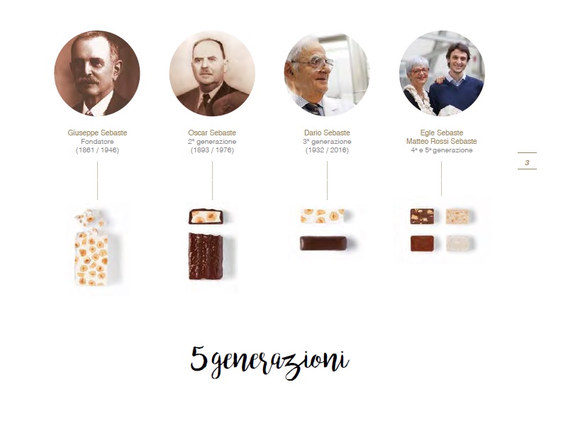 Nel 1885 Giuseppe Sebaste fondò lo storico torronificio. Non potendo contare su grandi risorse economiche non poteva permettersi le mandorle che arrivano dal Sud Italia. Fece di necessità virtù, con la geniale intuizione di usare una materia prima di grande qualità che abbondava nelle Langhe, le nocciole, impiegando i suoi 10 figli come manodopera per la raccolta. Oscar raccols il testimone del padre,